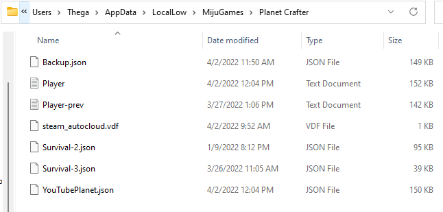 File path: ThisPC>C:>Users>Username>AppData>LocalLow>MijuGames>Planet Crafter