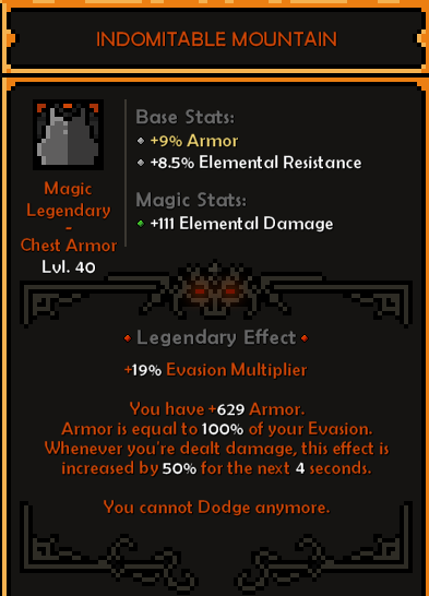 • Armor:[Indomitable Mountain] Evasion Multiplier and Convert to armor.