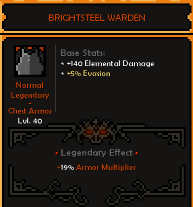 • Armor:[Brightsteel Warden] Armor Multi, If you don’t select Fury as attributes.
