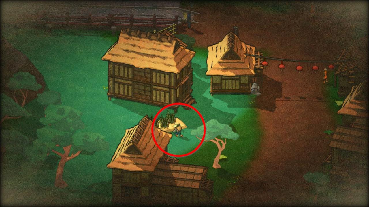 When you look through the window from the top floor, you’ll enter a minigame of finding 5 workers. Keep searching for them even if you discover the source of noise before finding all 5. Two are in the rice fields, one right of the left of the noise source, one in the far bottom left and the last one in the far bottom right. If you accidentally focus on the quest marker, you can still go back and scout the area.