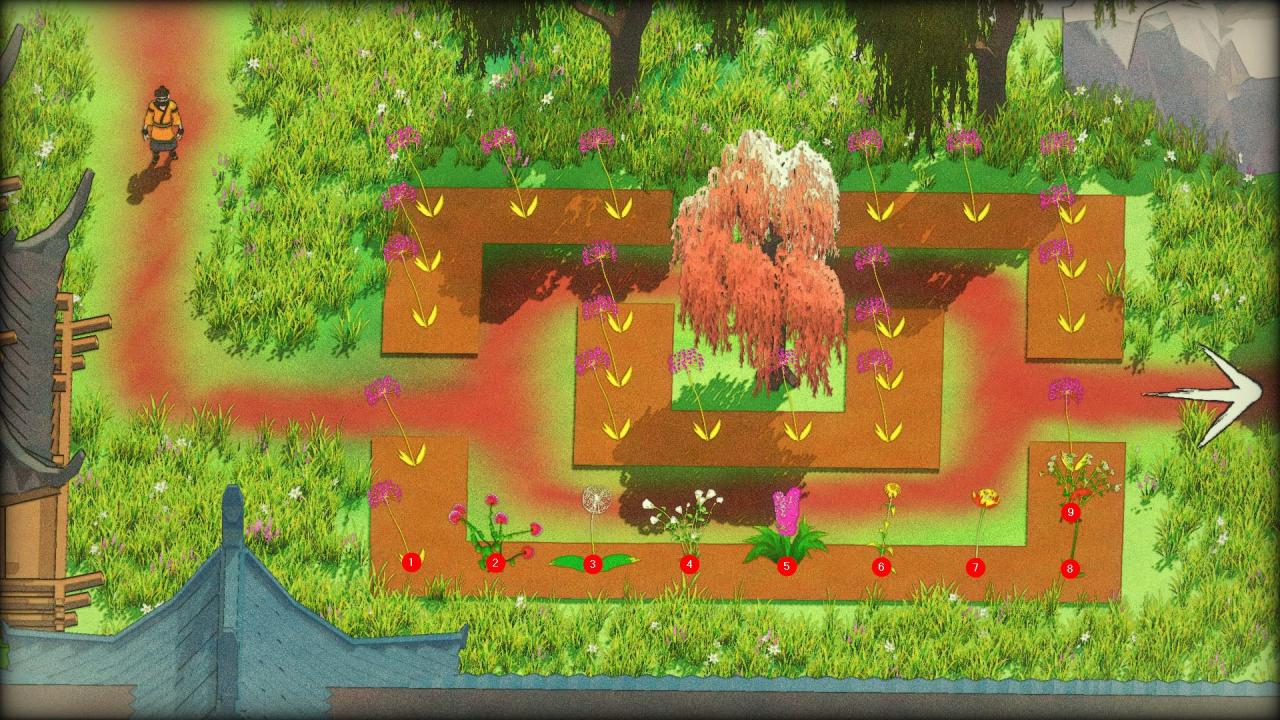 When you start your walk through the garden, you will have to talk to the NPC standing next to an empty flower bed and follow the quest by planting flowers in each of the garden spots.