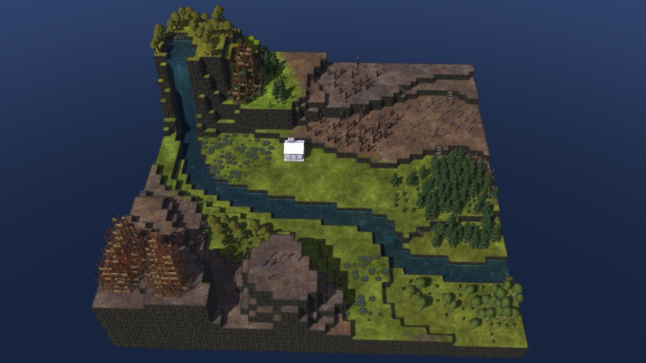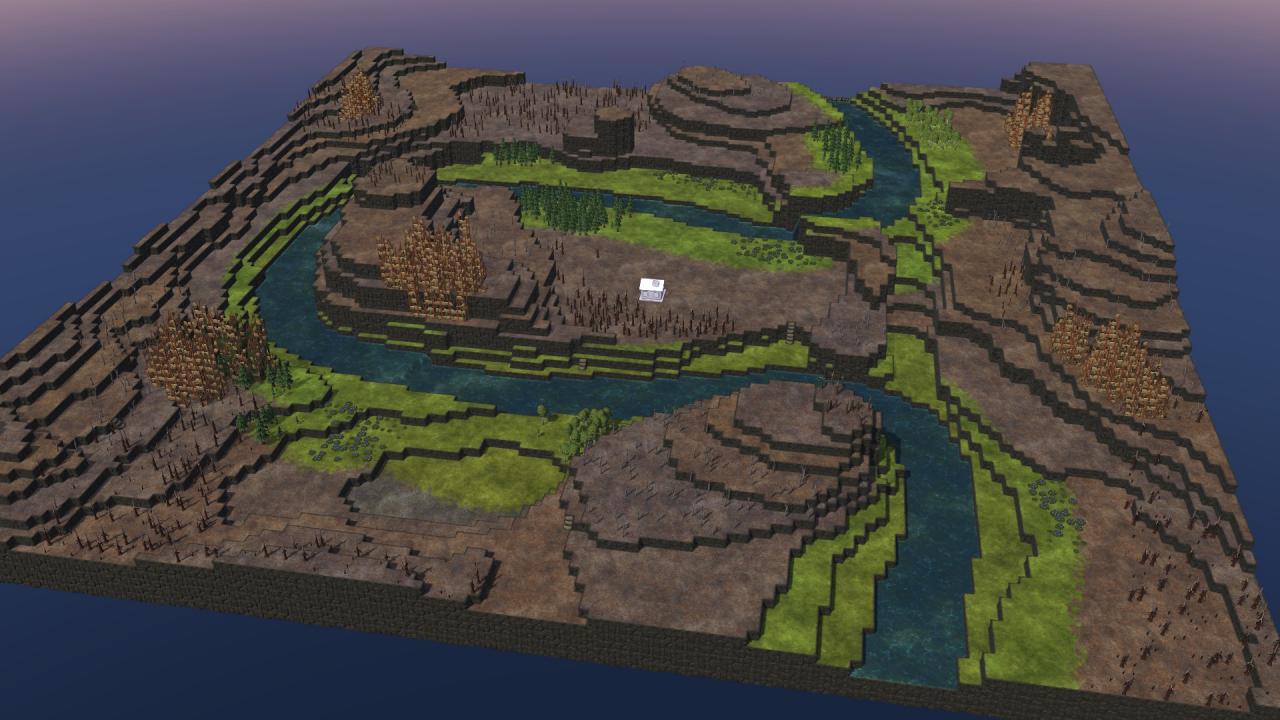 The river winds off of two larger lakes. But, the map is mostly land, as opposed to the Thousand Islands map. You could do just about anything with this full size map. Everything is possible here: terraforming, explosives, suspension bridges, and either faction is do-able.