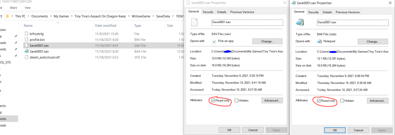 - Right click on your saves files ( “Save0001.sav” ), click on properties then at the end of the page check the “read only” option. Finally hit “apply”.