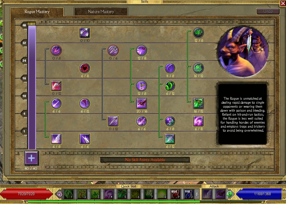Once you’ve got traps going as well, you can continue leveling up Rogue to get Poison Mayhem or level up Calculated Strike and Envenom tree for your own DPS or level up Nature to level up Strength of the Pack, unlock Nymph, Plague synergies, etc. Briar Ward isn’t very useful until you get good CDR and Refresh so you can ignore that for now.