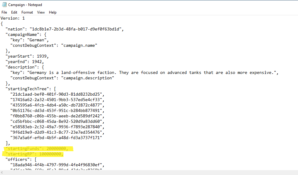 And then open Campaign through Notepad and edit starting funds and starting research points to your liking.