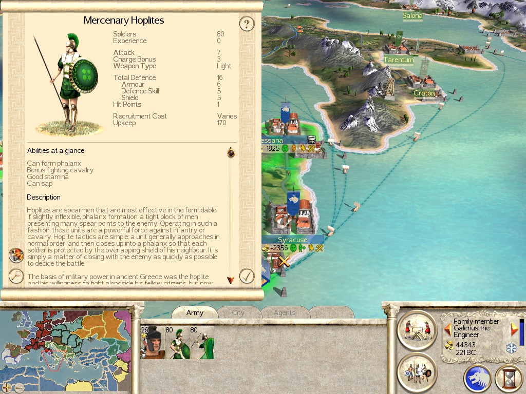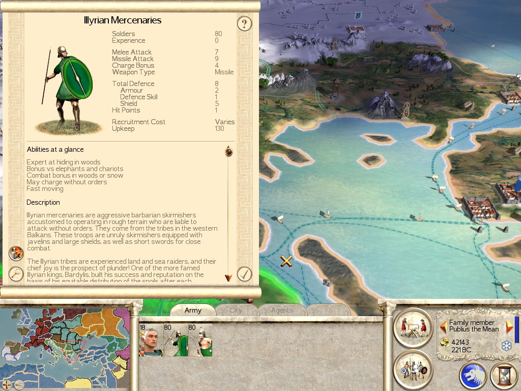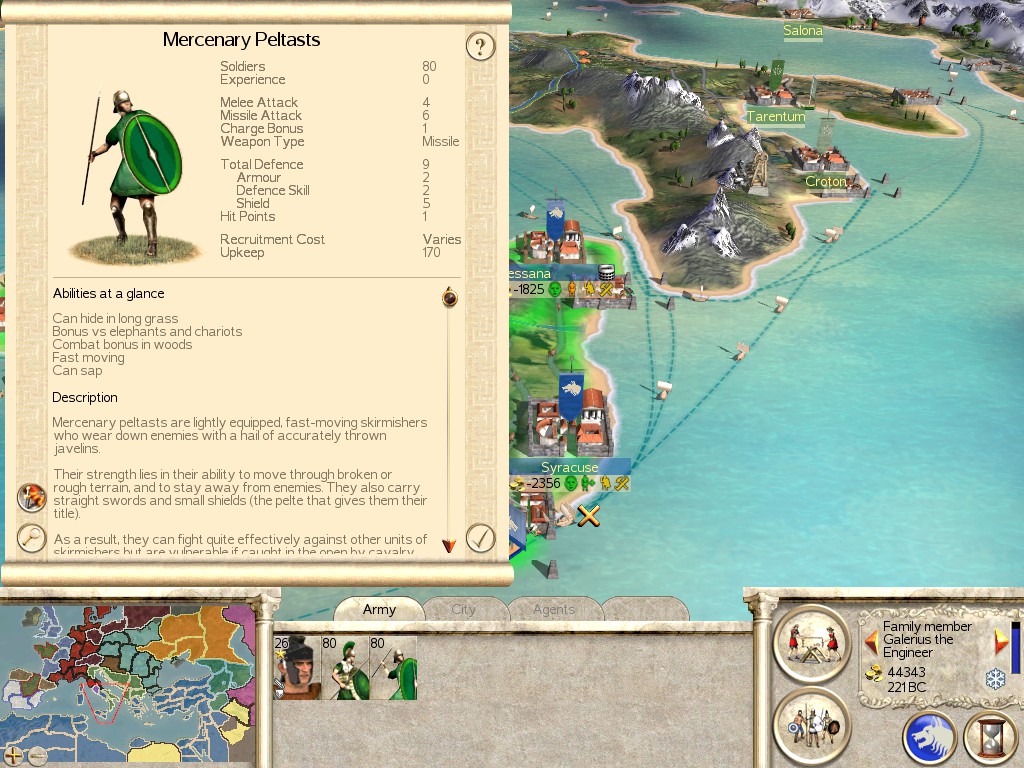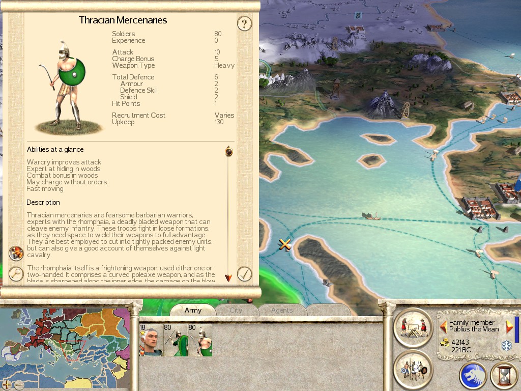 Location: You can hire these Mercenaries anywhere you find Greek or Macedonian territories.