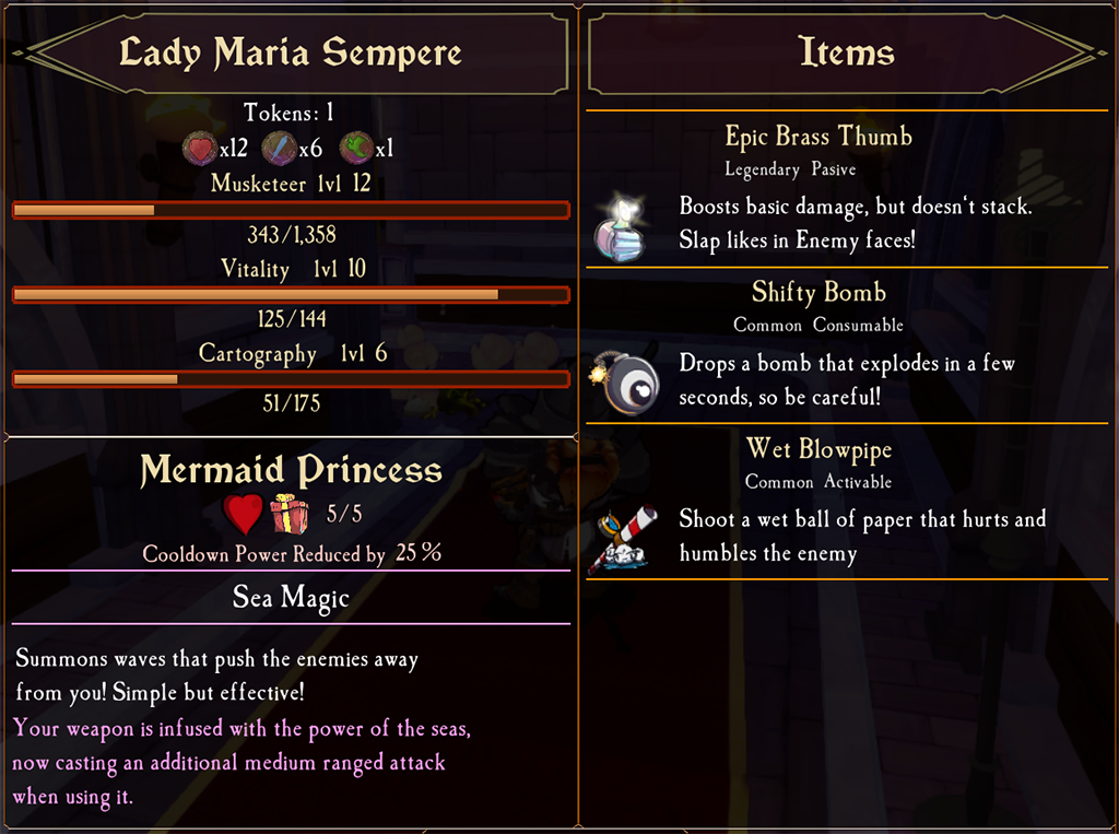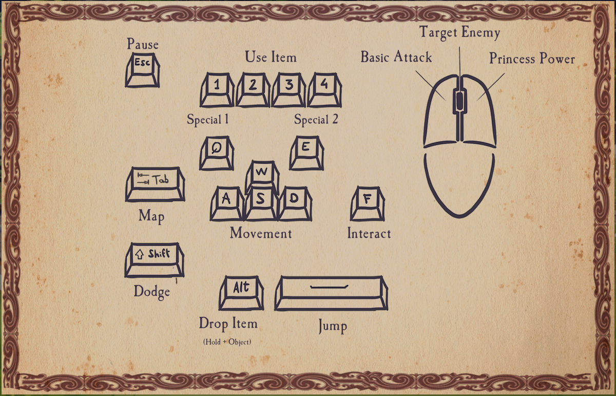 You may find trinkets or gifts in the dungeon that some princesses may like! To offer them you must choose which princess to rescue, and instead of entering the dungeon go to the table that there’s on the entry yard, and interact with the gift you want to offer!