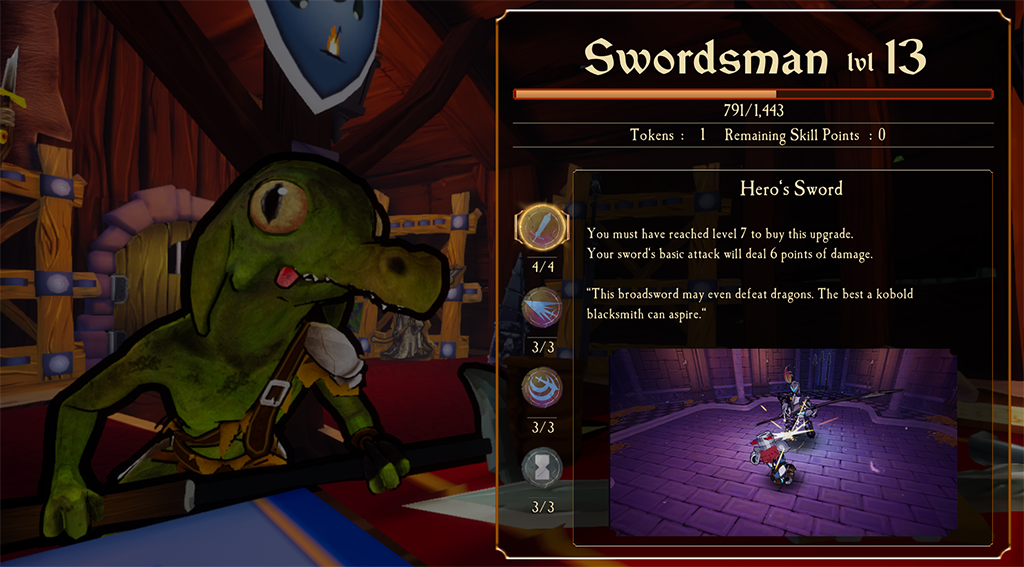 - Sword: It measures the damage and special abilities when using a knight with a broad sword. You can level this stat by defeating enemies with the sword! Managed by the Kobold Shopkeeper at his weapon workshop.