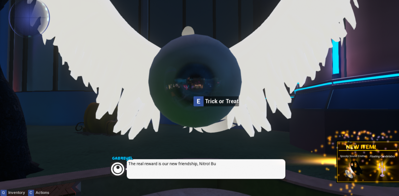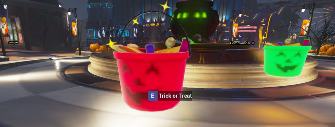 Another mini game event that appears is the Trick or Treat event where a bunch of candy buckets appear all around the plaza and you can just collect them to get some money and some holdable items that can be eaten or sold.