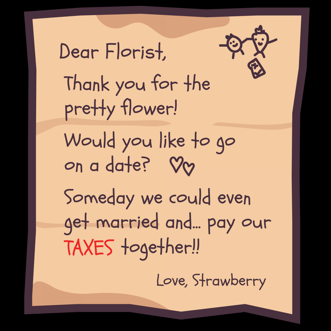 Deliver the florist’s flower to the strawberry to rip up this document!