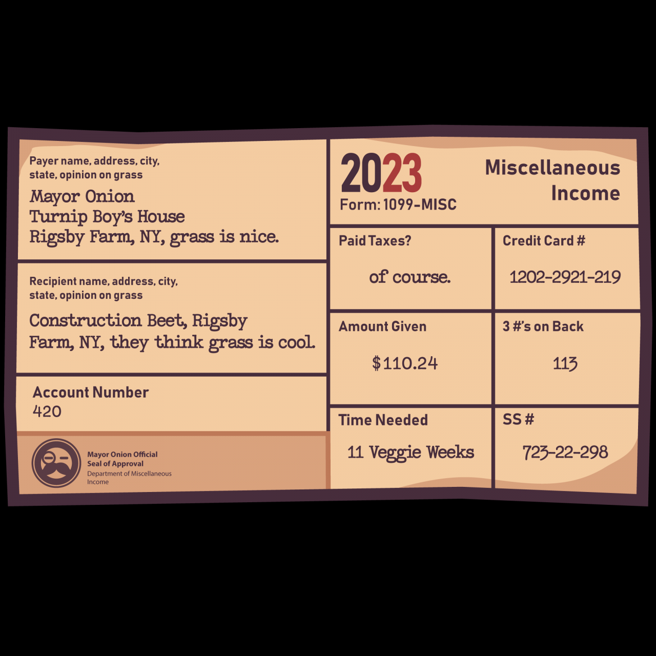 A complete how-to commit tax evasion, with locations for tax documents, hats, hearts, and even the secret boss!