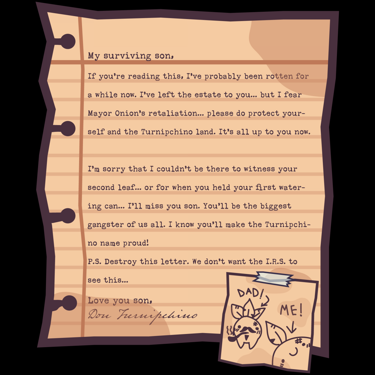 Find this letter in Don Turnipchino’s office in the Mysterious Mafia Base.