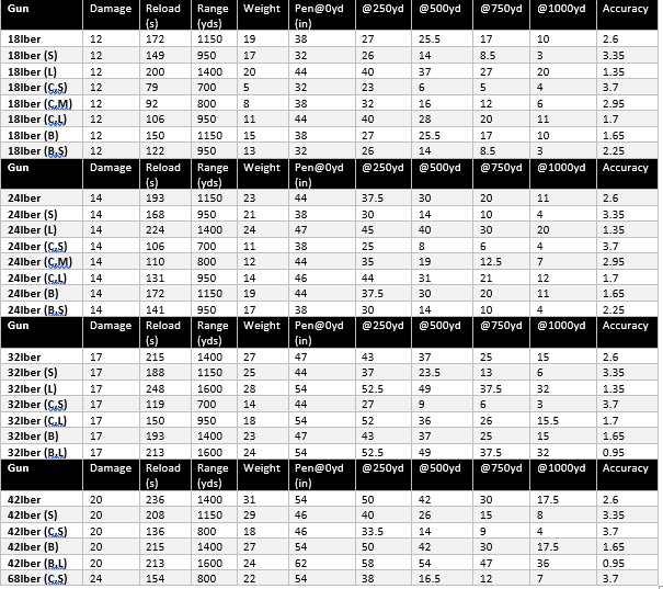 All penetration numbers are eyeballed estimates of in-game penetration graphs, Armstrong cannons used for iron cannon values, for accuracy the lower the number the tighter the base shot dispersion