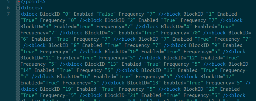 Also Enabled doesn’t seem to do anything. If you want to disable a block, set its frequency below 1. This leads me to assume this parameter is outdated but still exists in the game code because it’s not worth the hassle of completely removing.