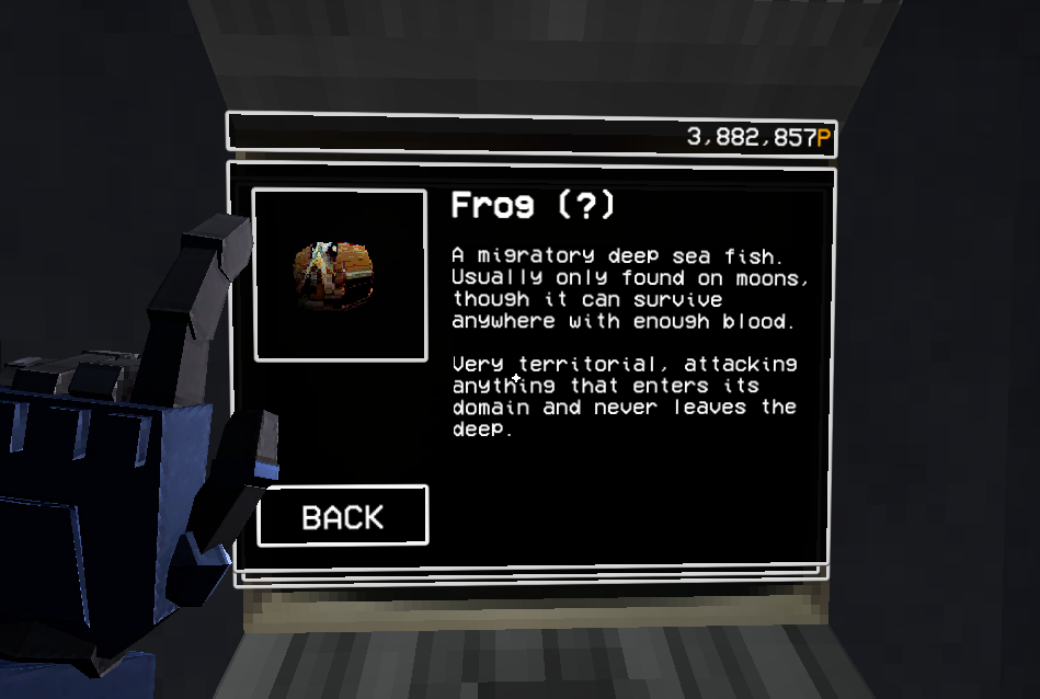 Dive into the lake of blood until you see a darker pool in the middle. Fish and obtain a frog..?