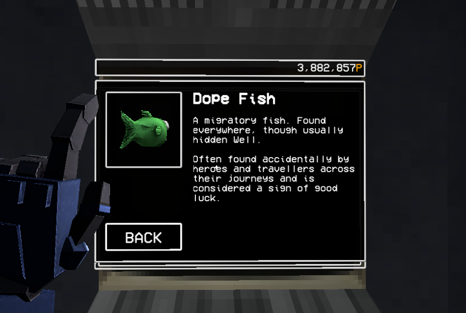 Fish into the water well right next to the log cabin to get a Dope Fish. May need a bit of jumping.