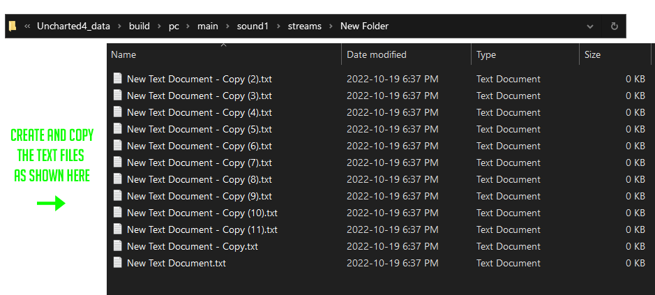 - While still in that folder, press Ctrl+V 11 times to make 11 copies of that text document in this folder.