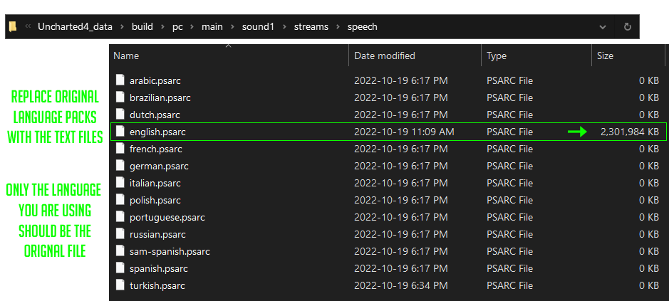 ***This has only been tested with English audio, if using another language as your primary audio, I would advise keeping the English file as a precaution as it’s quite a bit larger than other files, it might have additional sound files that are used regardless of which language is chosen.***
