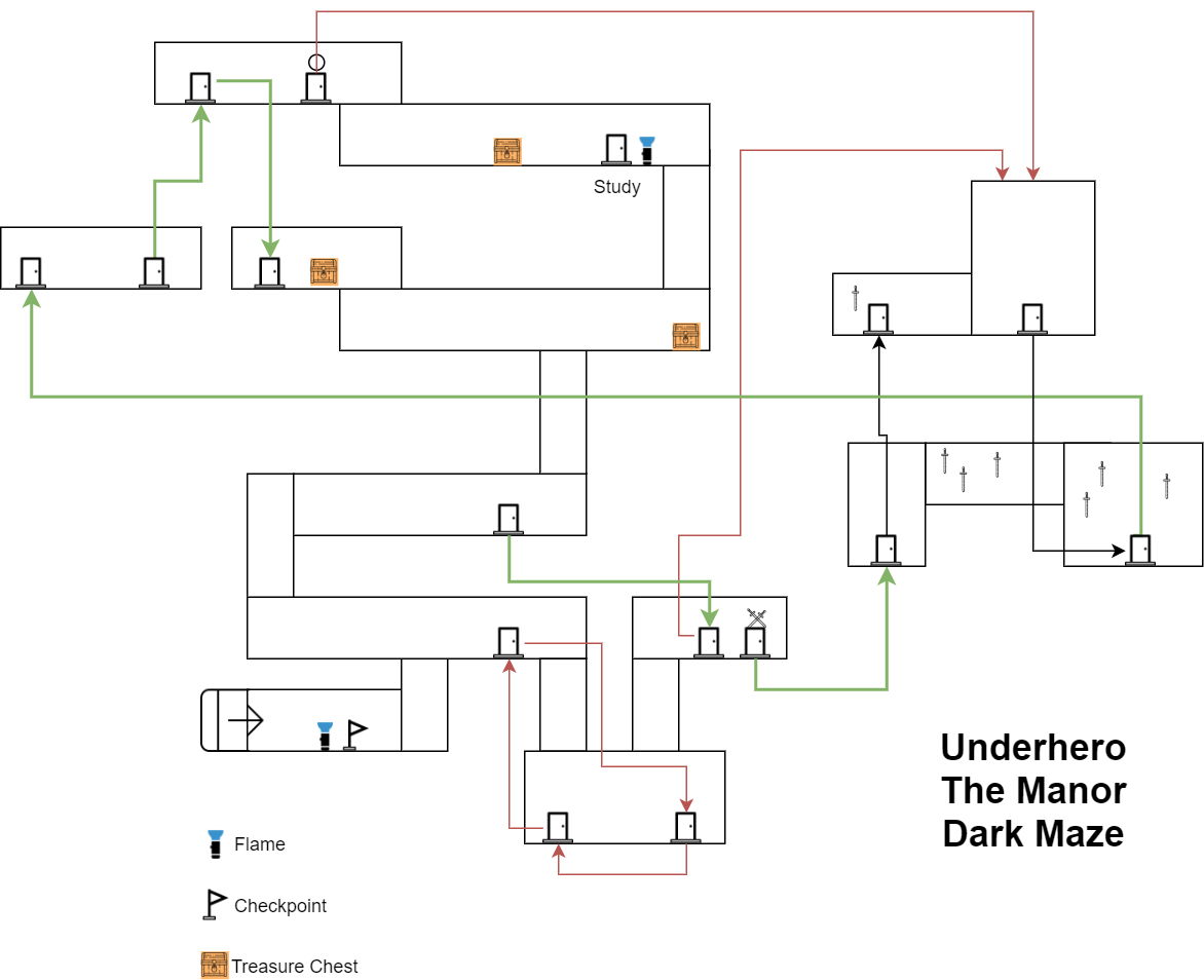 This is a map of the dark manor maze. There are 3 chests and a study. Once you’ve found the 3 chests that’s really all you need to do in this section.