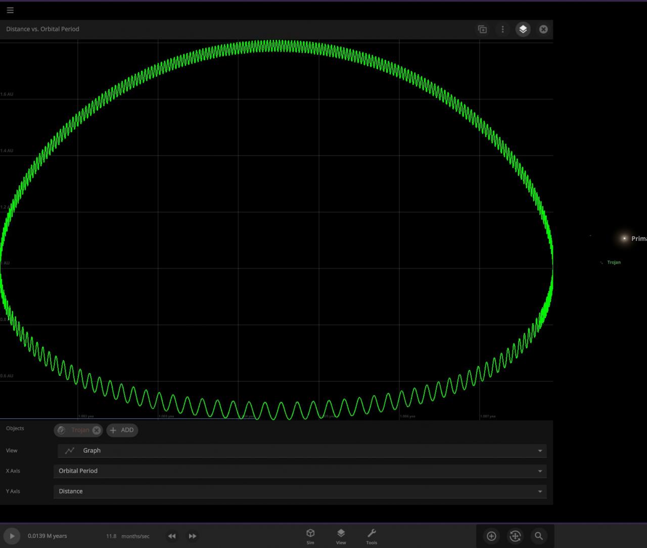 - If the body is not a trojan, instead orbiting the primary body, then the graph will look similar to