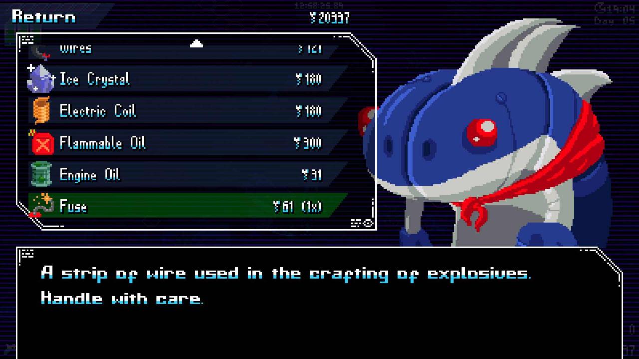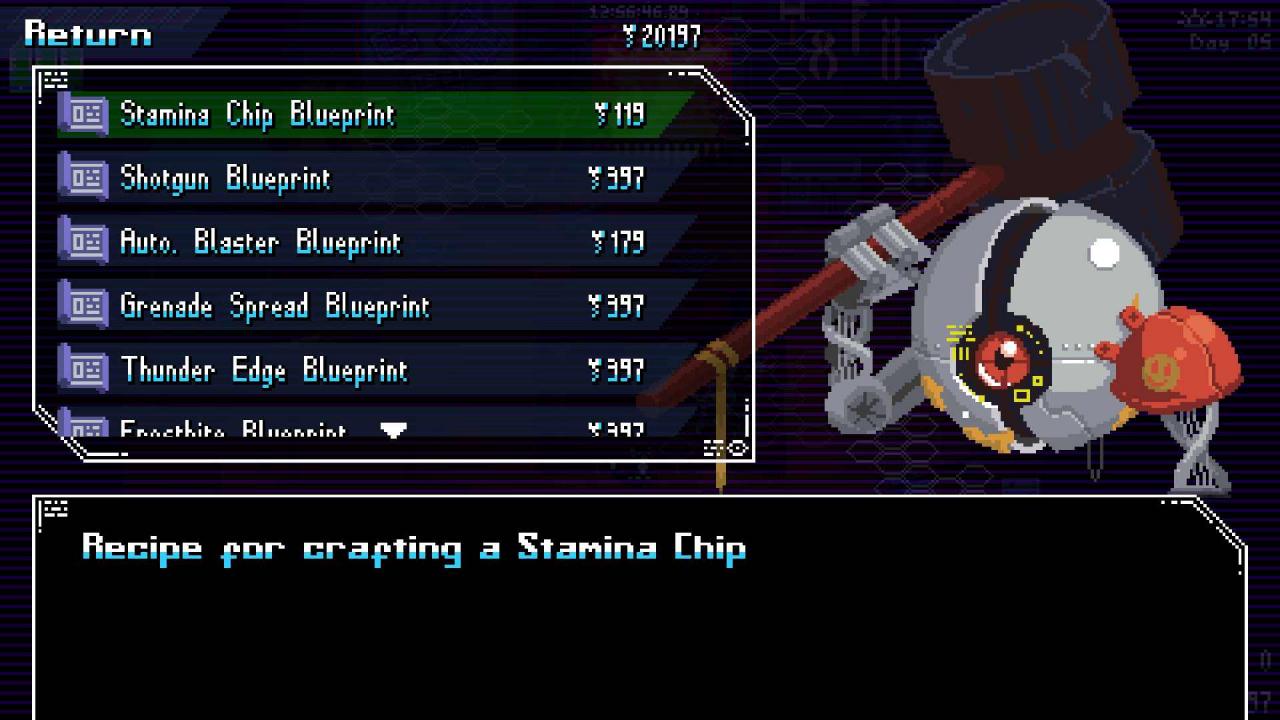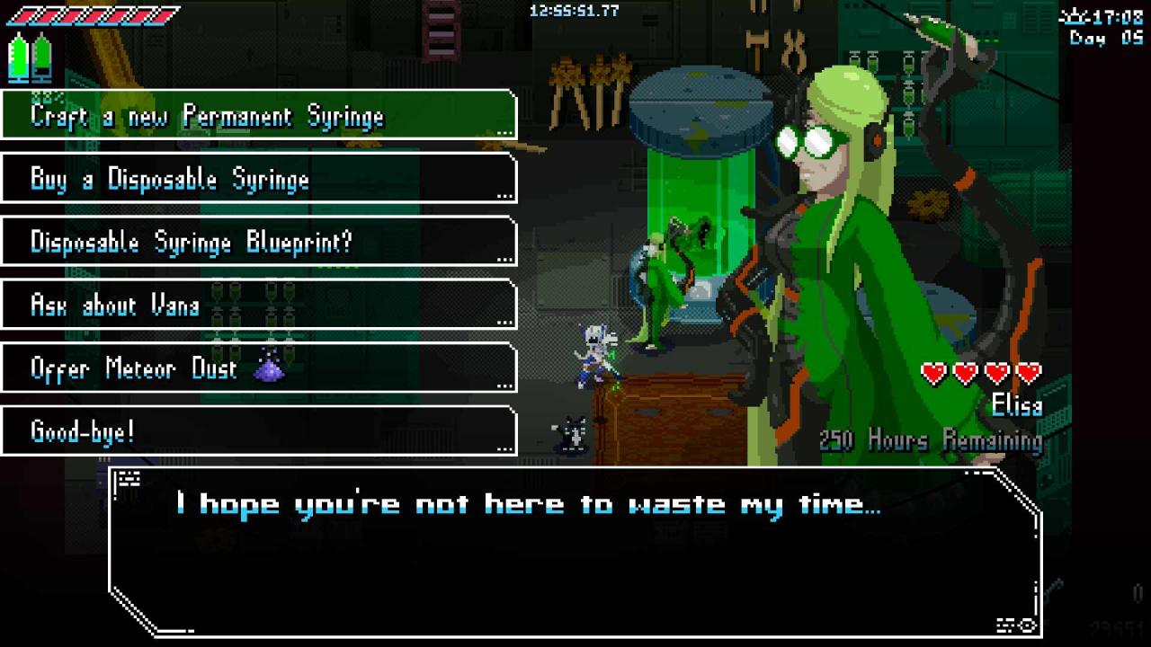 Sells disposable syringes (600) and it’s blueprint (1500), permanent syringes (max 3, cost 3 dust each).