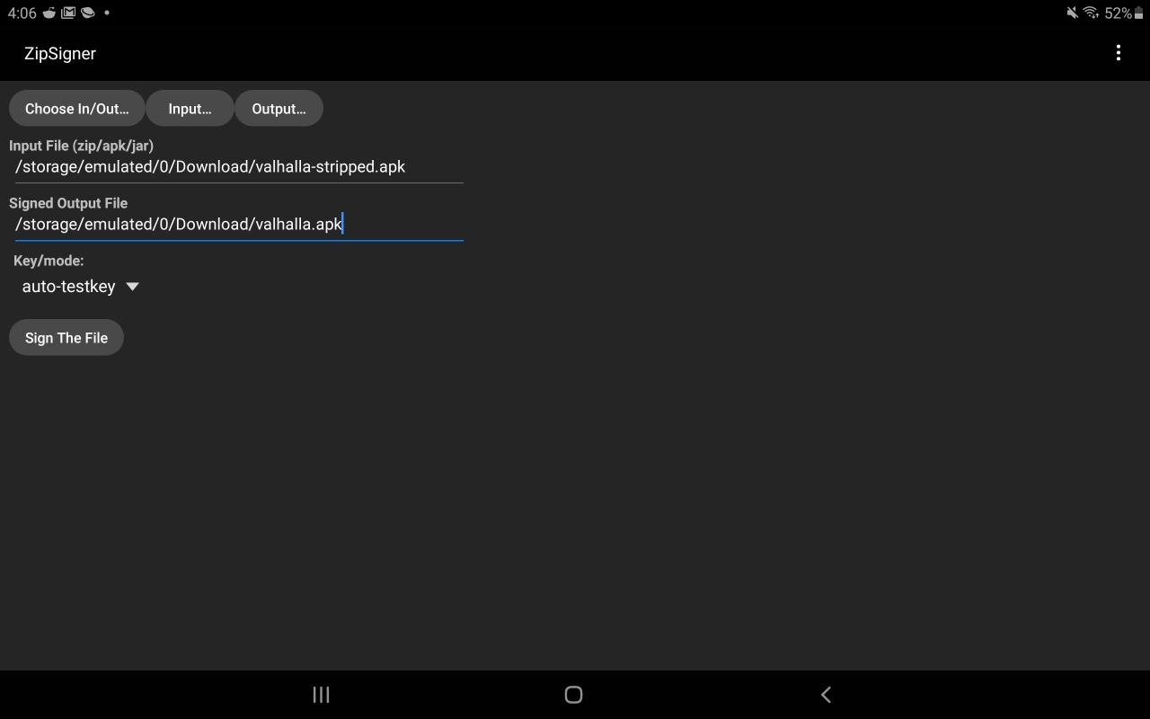 press “sign the file” and wait for it to finish signing. Find the finished .apk file, install it and play the game!