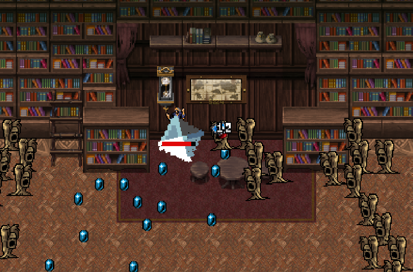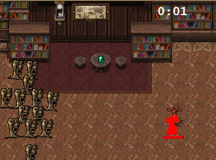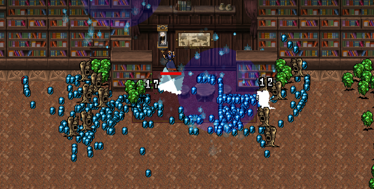 The red gem is important because that’s where all the experience is going. The game has a hard limit on how many gems can be on screen, and when that limit is hit, it starts compressing them into a single gem. By the end of your run, you will have around 10,000 to 15,000 kills worth of experience in that one gem.