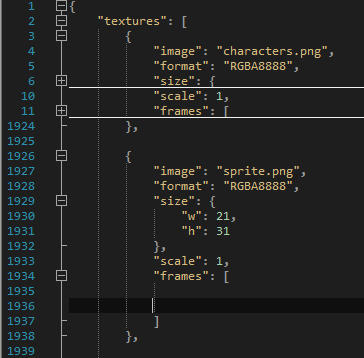 "image": "sprite.png", /*Insert the name of your spritesheet file*/
