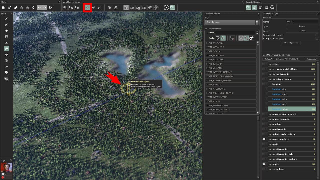 Now let’s move the locator. Choose the Map Objects Editor tool and click the Tampere sphere once.