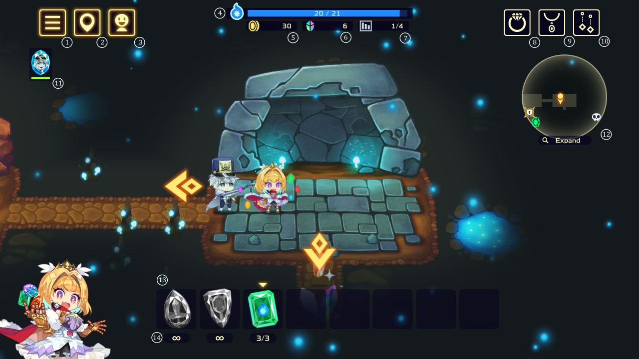 1. Choose a dungeon to start a new run2. Unlock new units, gems, abilities, and gear