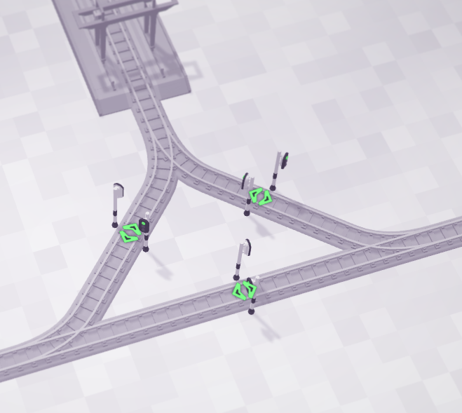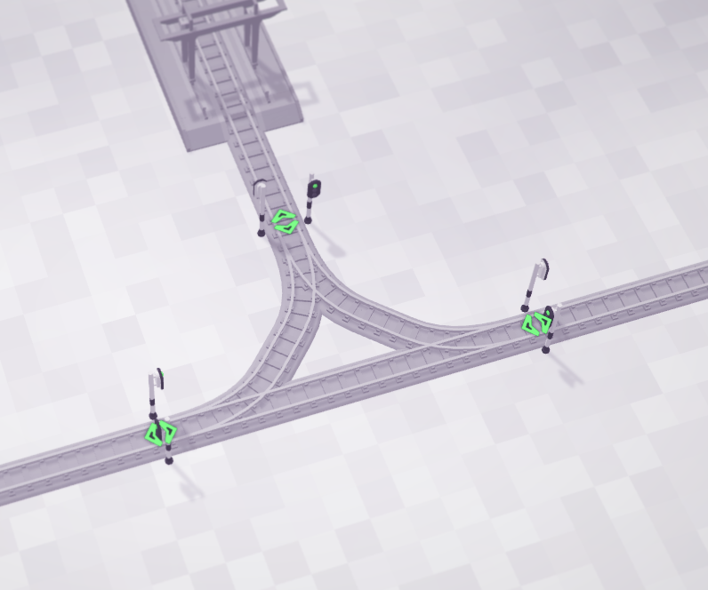 Now we must make sure that after this block in all directions, there is enough space to fit an entire train before the next signal. The arrows denote these exits.