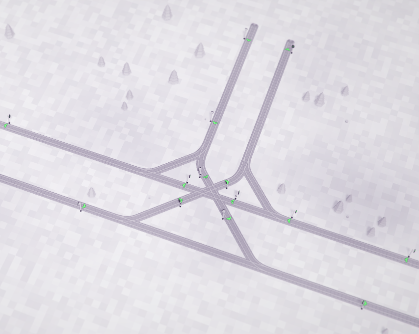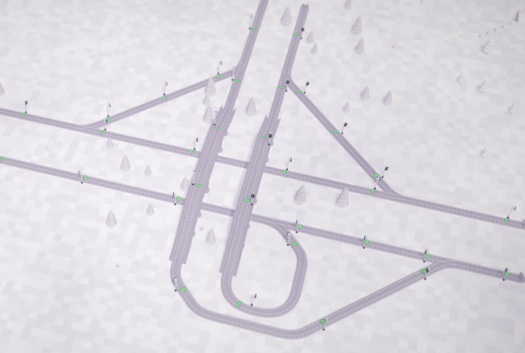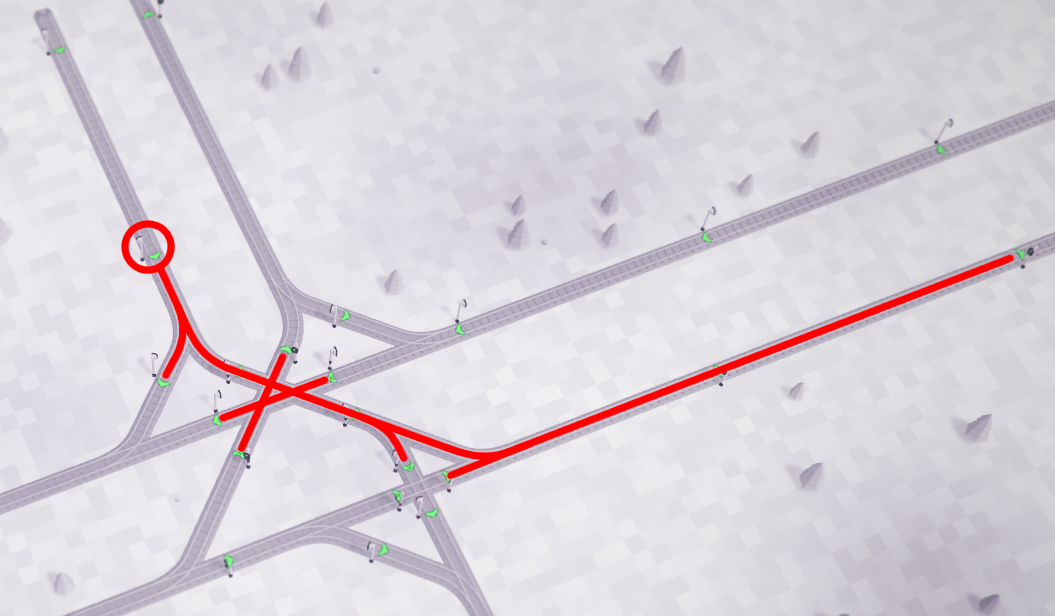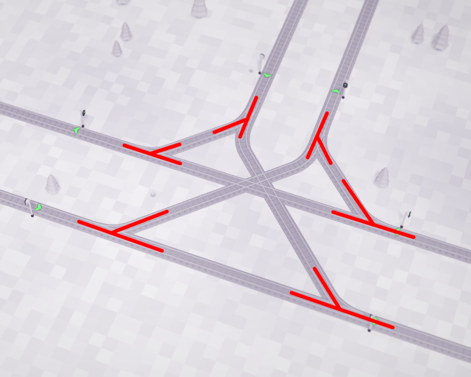 The last step is to make sure all branches have been divided, in order to improve efficiency. Most of them were dealt with when we added signals to the middle intersection, but some are still left out. This is the same principe as for basic one-way merges and splits.