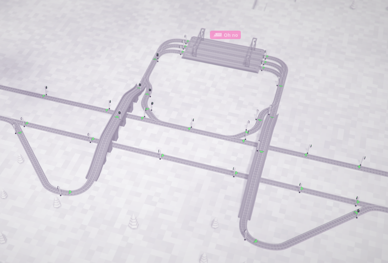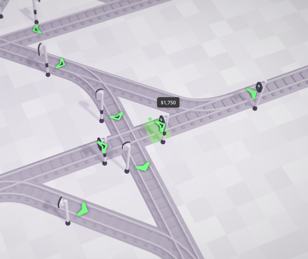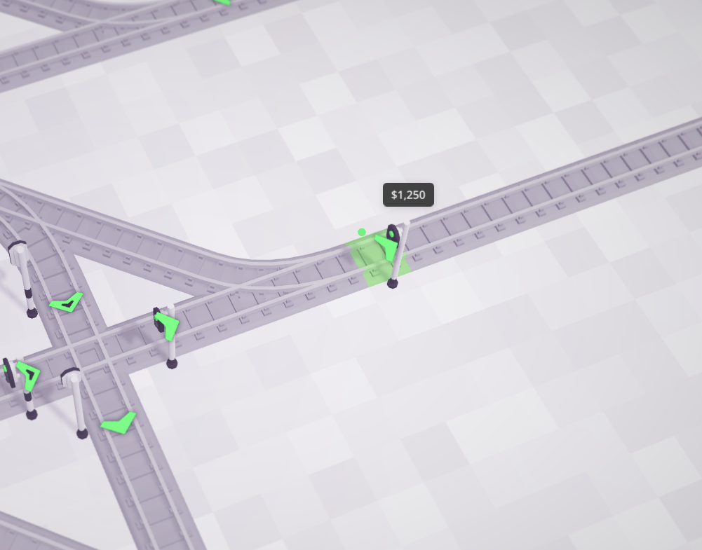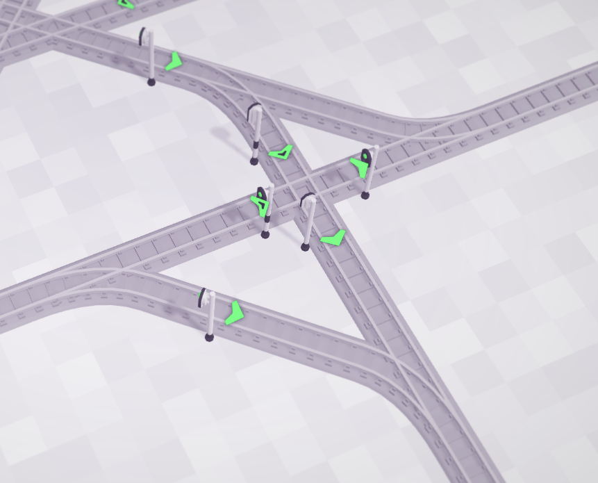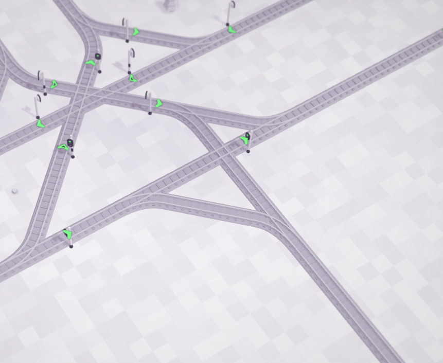 In VT we have three dimensions, so it’s possible to build intersections that are non-blocking. This means we need no pre-signals at all. These are more efficient than level intersections.