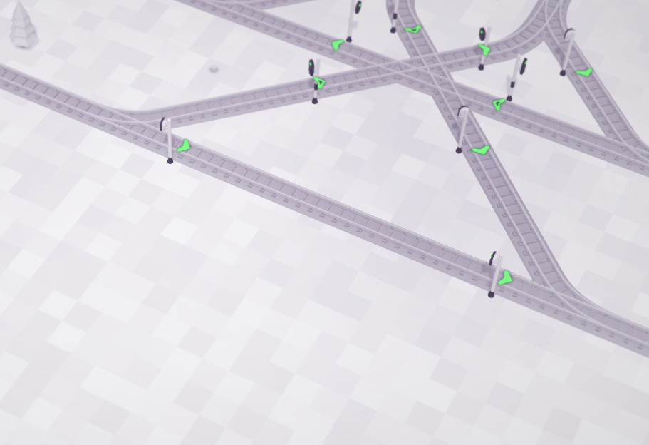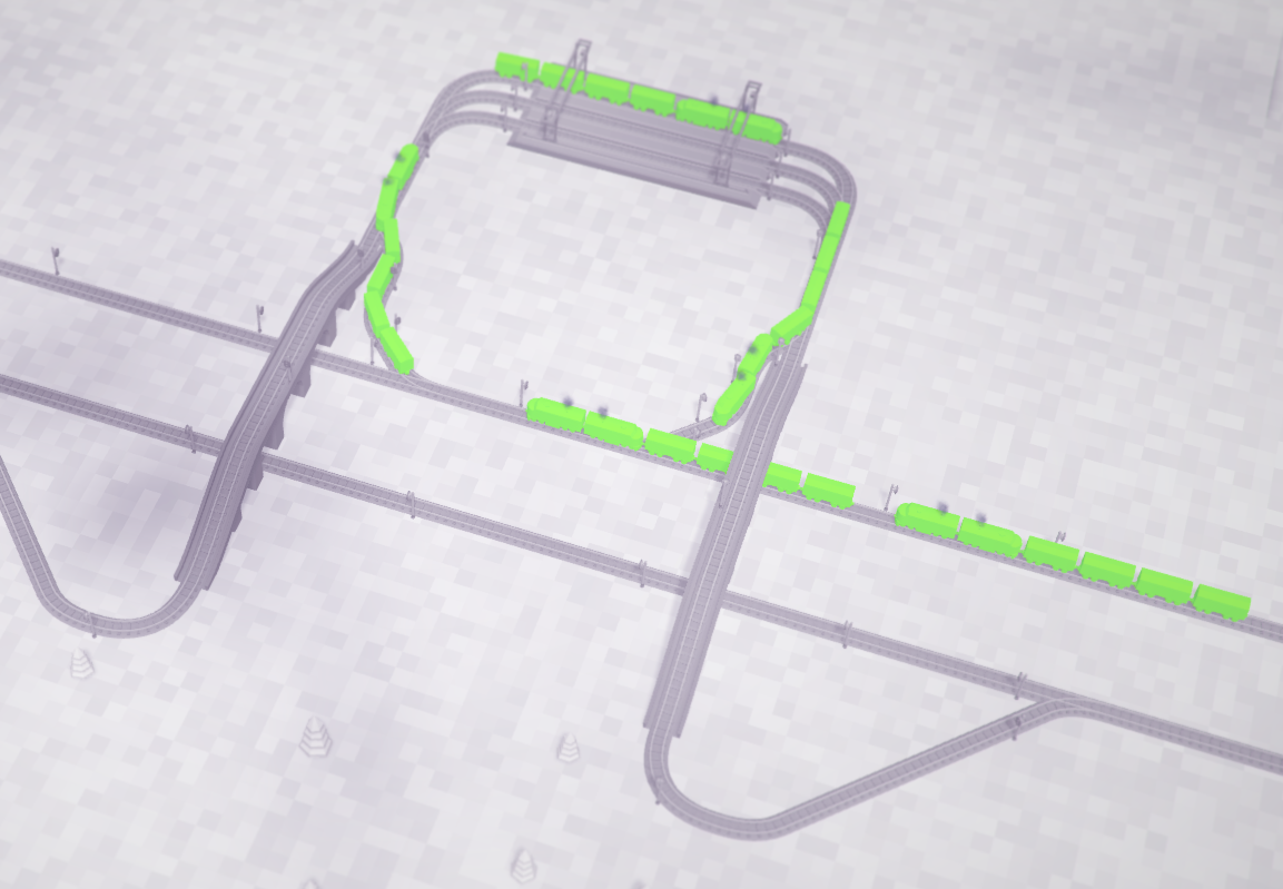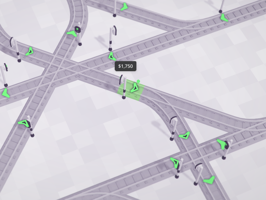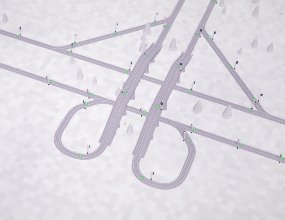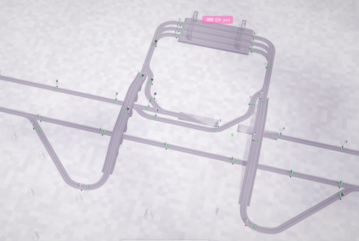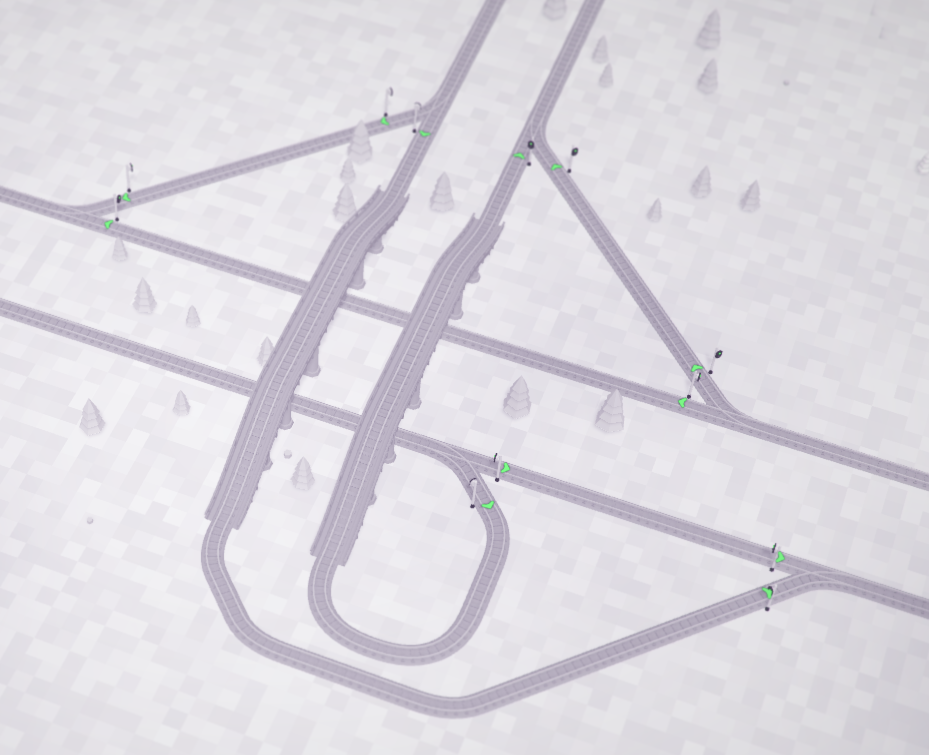 In VT we have three dimensions, so it’s possible to build intersections that are non-blocking. This means we need no pre-signals at all. These are more efficient than level intersections.