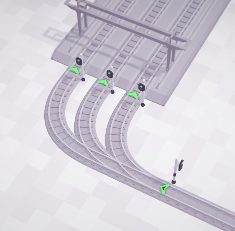 Remember that this is where trains will be traveling the slowest and most likely to be waiting, so you will want your normal signals close together. You also want the beginning split and end merge of your station to be as small as possible so that trains don’t spend much time in them.