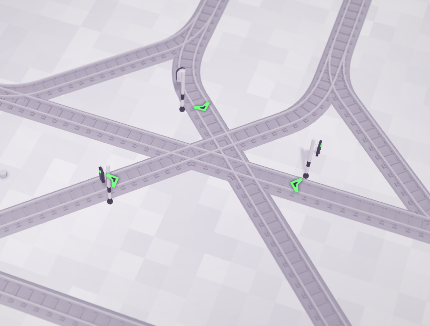In VT we have three dimensions, so it’s possible to build intersections that are non-blocking. This means we need no pre-signals at all. These are more efficient than level intersections.
