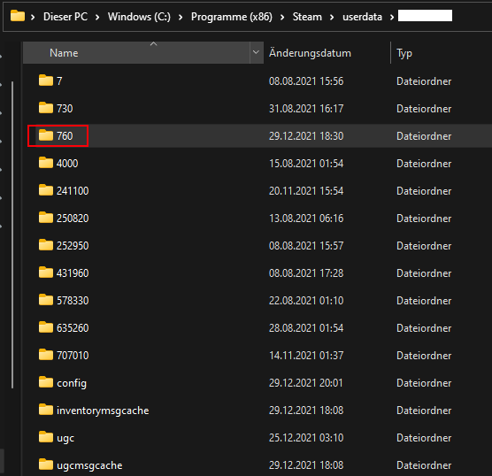 3. open the folder of the right account, if you’re not sure which the right account is you can use SteaScree to check it with the User ID