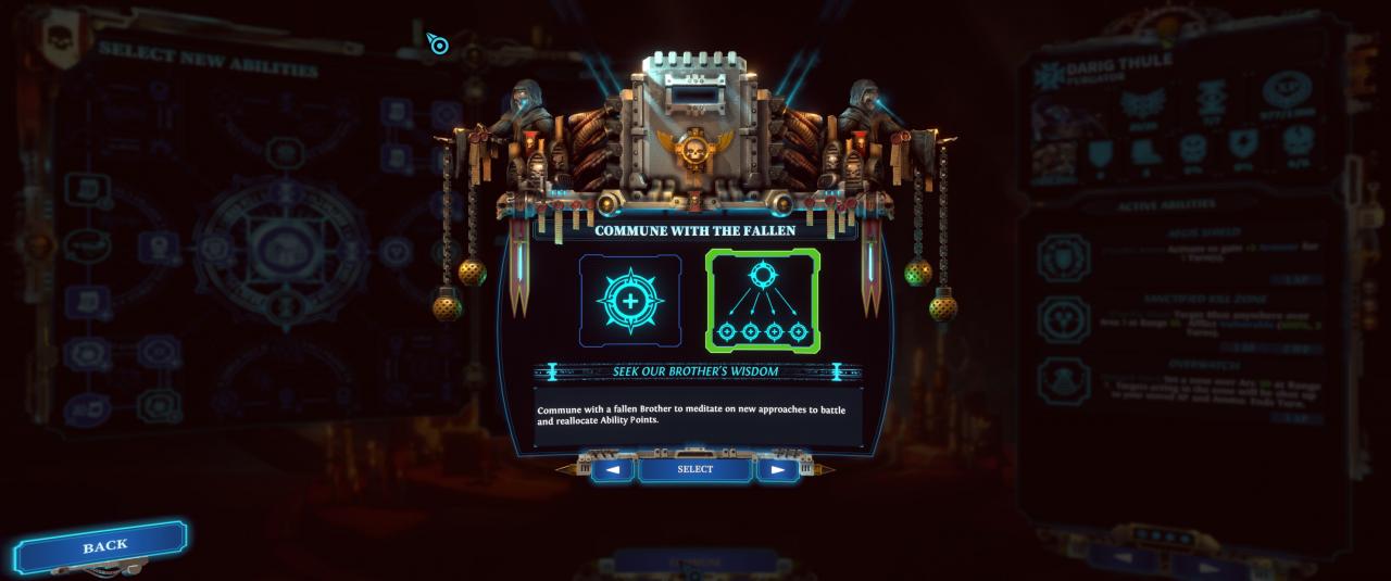- Once you press it, you are given the option to give him and additional ability point or to respec his abilities. This ‘costs’ 1 of your dead units:
