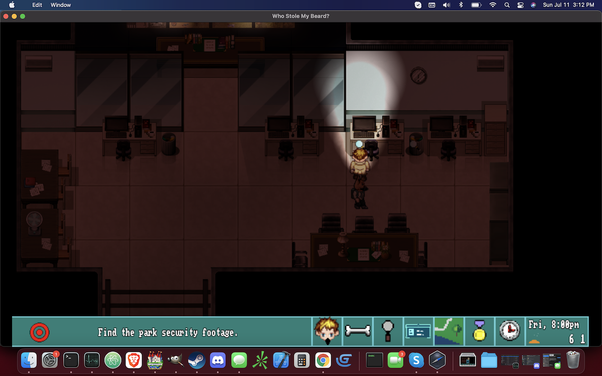 To get into the professor’s office at the university you need the chin curtain beard. To get this you need to enter City Hall after closing, which itself requires the winnfield beard. Go to your apartment floor 2 and go into Ella’s house, and pick up the winnfield. Then go to City Hall after closing, and go to the 2nd floor west side courtroom where there is a chin curtain on the desk. Take it and head to the university. At the university, go to the history department on the right side. Go to the far right and you will see the professor’s office and enter. Inside you will do a battle, then confront the professor who admits his deeds and returns your tattered beard remains.
