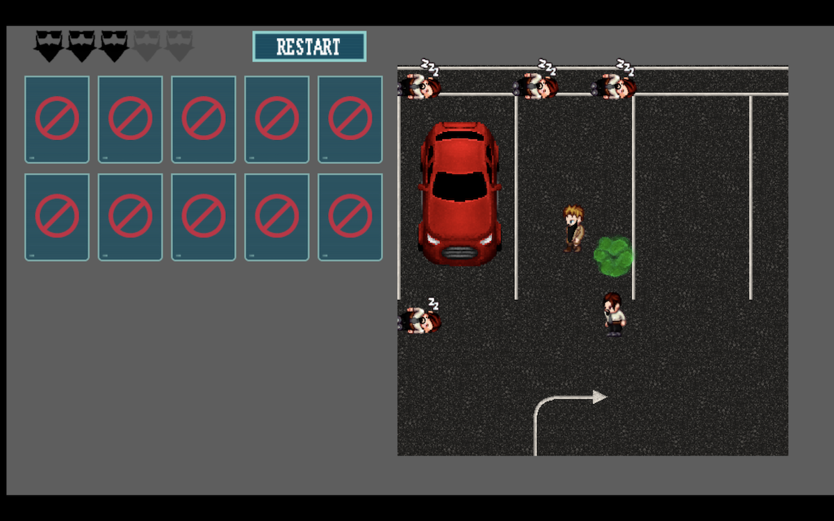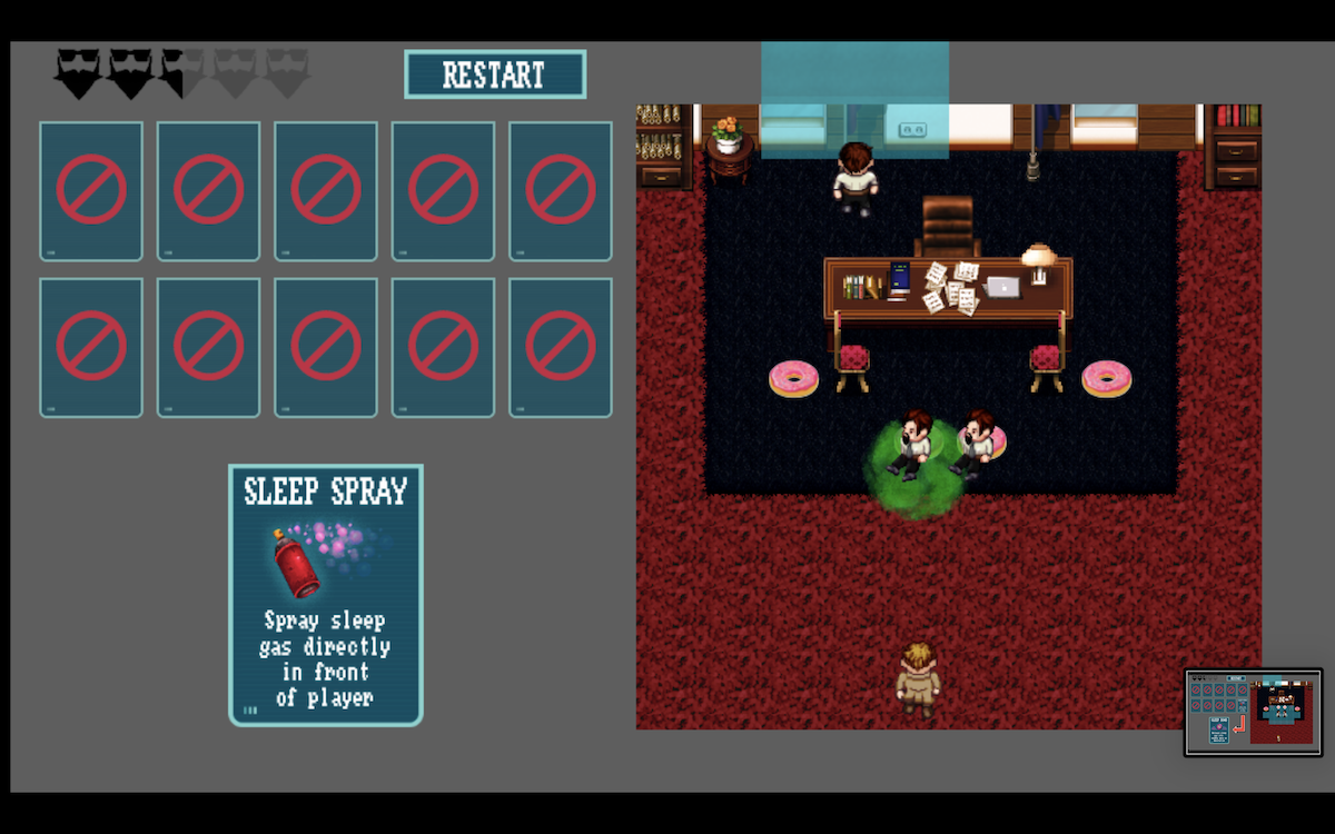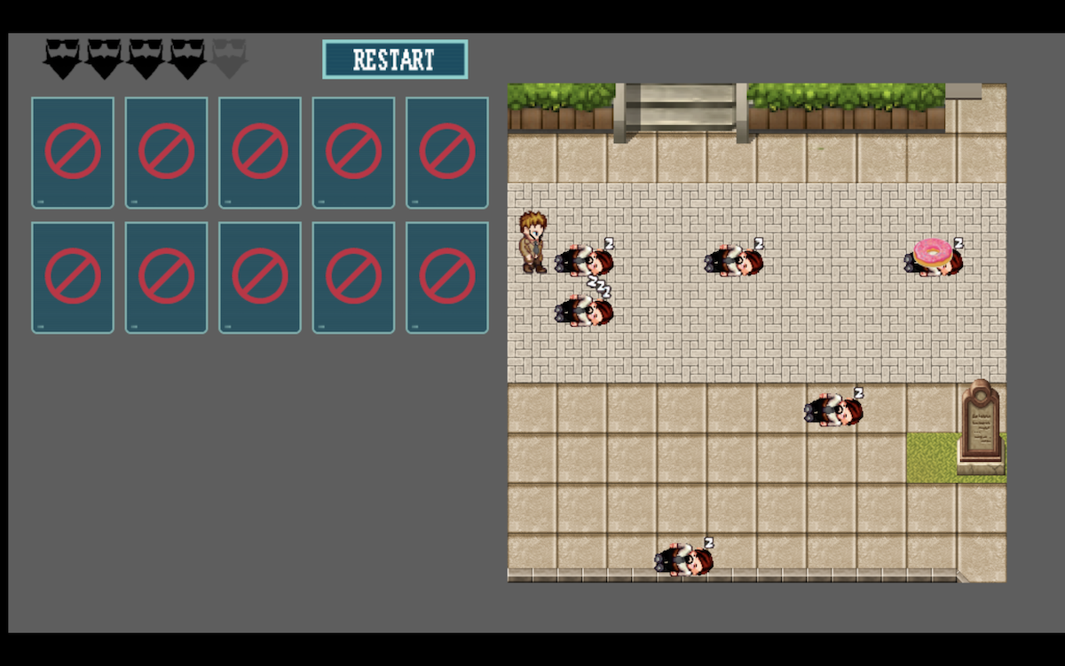 - Place the donut above the trash can so the right guard walks to it and lines up with the other 2 guards.