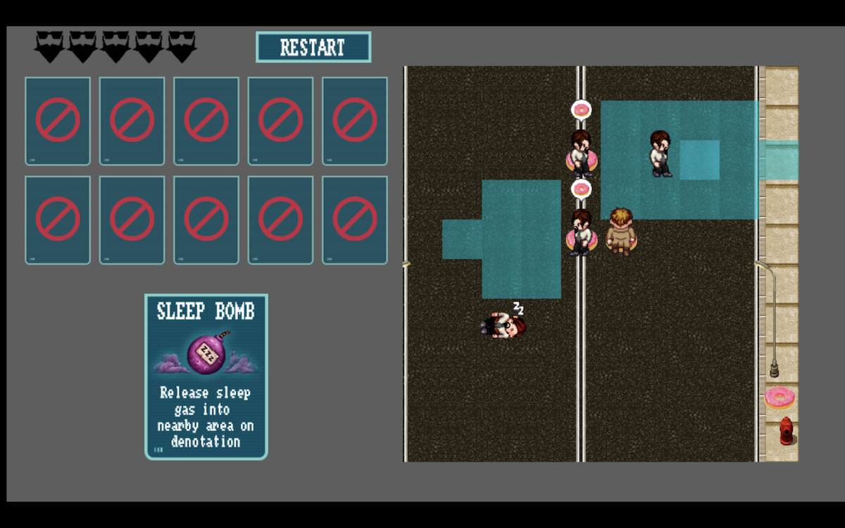 - Lure the guards with donuts so they stand in a square and look in the right direction so you can drop the bomb. You might need only 3 donuts, not the 4 you are given. This is the hardest battle, but after a few tries you will get it.