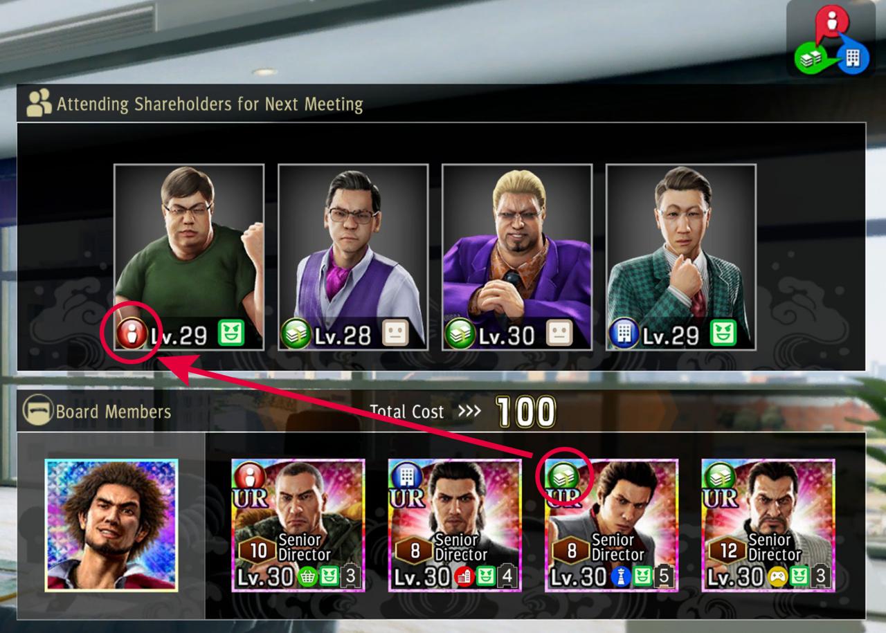Basically, you’ll want to select a board member of each colour in order to counter any potential arguments. Before starting a meeting it will show you who you are up against. Maybe they won’t be using all colour options, but their arguments might.