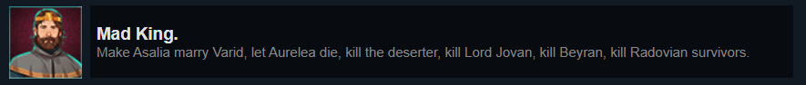 While the two first kings are busy arguing whether or not you should help radovian refugees, Lord Varid will come up with an unexpected bargain : give him your 12 years old daughter’s hand in marriage, and he’ll reward you with his army.