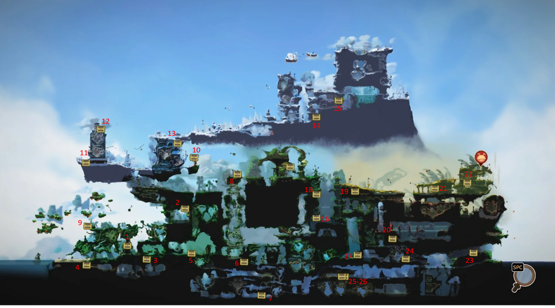 The chests are numbered in the image so it’s easier to find them in the video. Some of the chests had been previously opened but are shown in the video as well.