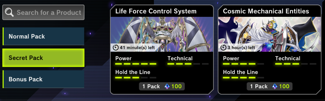 Secret Packs are your main source of cards, but at first you won’t be able to see them in the Shop. These Packs include all of the cards from a specific archetype, with some fillers. For example, the Cosmic Mechanical Entities Secret Pack include Krawlers, Mekk-Knights and Knightmares. You need to unlock them. I’ll explain how this works in the Card Crafting section.