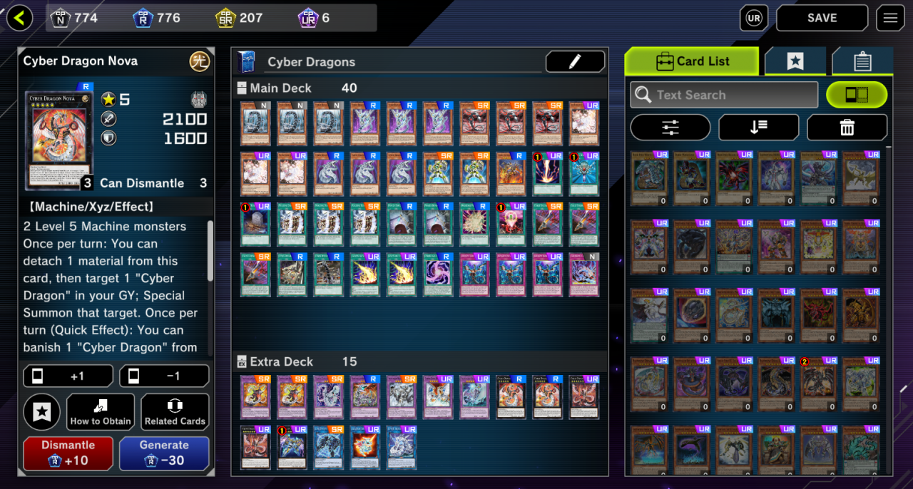 The first answer to that question is “Not the Master Pack“. The second one will be answered by the cards themselves. Let’s say we want to craft a Cyber Dragon Deck from scratch. Where do I begin? Let’s search for a card of that Deck, in this case, Cyber Dragon Nova. There’s a nice button at the bottom of the selected card titled “How to Obtain” which tells you which Pack has the card.