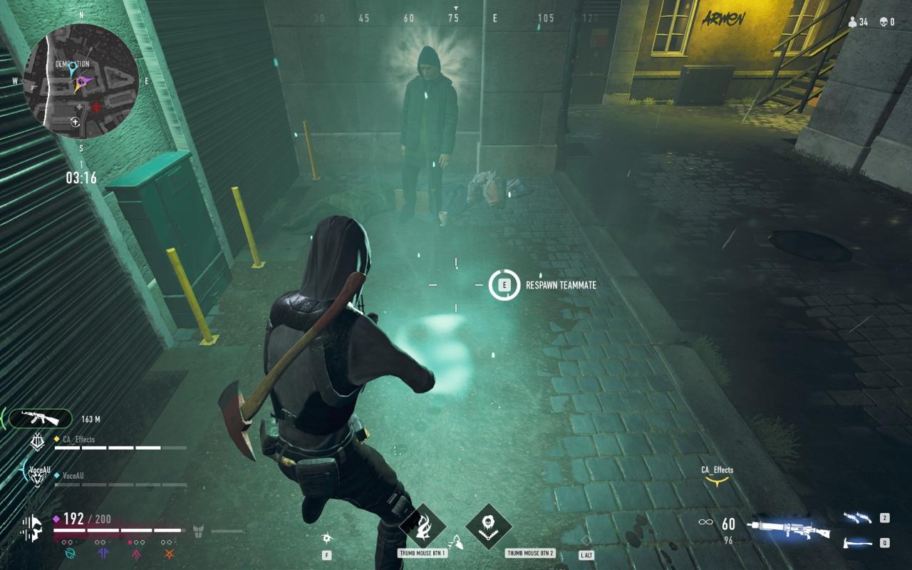 - A teammate who has been respawned will arrive on the map with only a pistol.