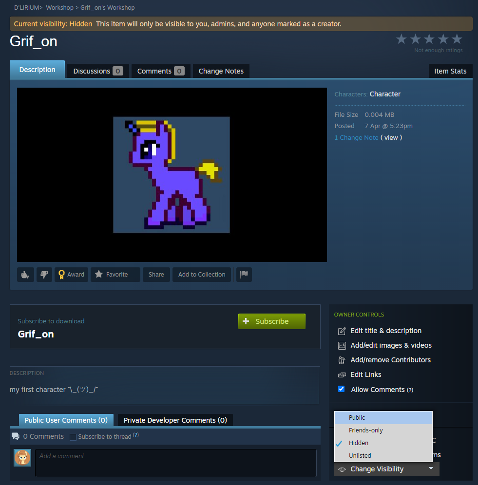 That’s it , after a few minutes your character will be visible in the workshop.Thanks to Grif_on for his great guide, all credit to his effort. you can also read the original guide from Steam Community. enjoy the game.