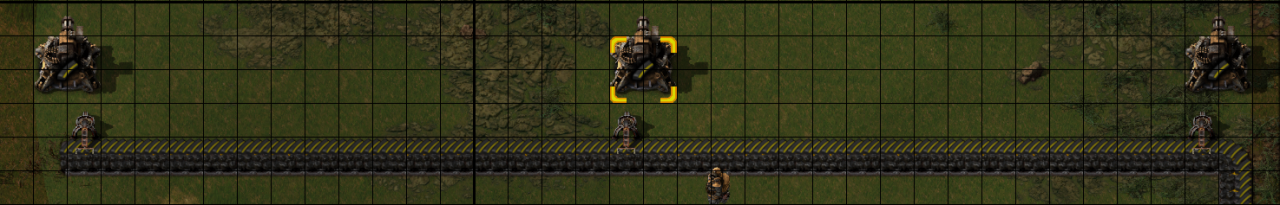 Once you have a literal wall of guns around your base, you want to commit to adding a wall. It is extremely important to keep one empty space between your wall and your turrets, because more advanced melee bugs have melee attacks that can hit structures behind the walls. You should also be mindful to change the type of ammo that gets fed onto the belt once it becomes economically feasible.