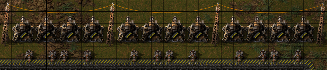 It should also be noted that you can reduce the risk of base-wide power failures by using Burner Inserters to shuffle coal into your boilers instead of electric inserters. Both the Burner Inserter and the Boiler run on combustibles, so it’s a match made in heaven that will ensure continued operation as long as coal comes in. Ideally you’d want one belt line of coal with 20 boilers on each side for a total of 40, each powering 2 steam engines for a total of 80. Each group of 20 boilers is powered by 1 pump. This should be able to keep your base going until you get nuclear power.